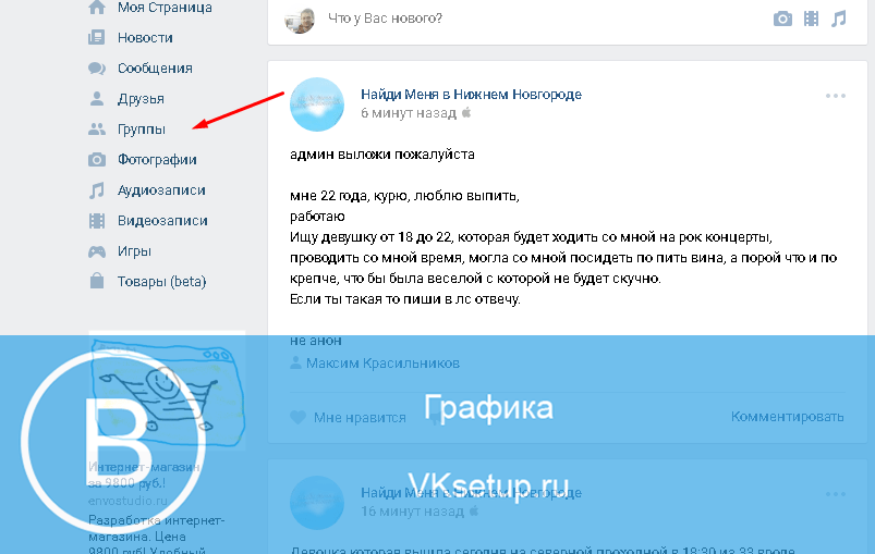 Идем в раздел «Группы».