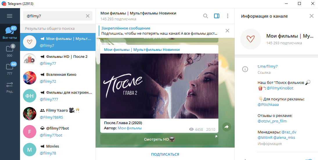 В Телеграме можно найти много контента. Среди него – обзоры на фильмы, сериалы и мультики. Многие каналы специализируются именно на этом. На большинство из них подписано несколько тысяч человек, ежедневно получающих обновления.