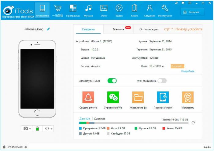 Для более продвинутых пользователей есть возможность воспользоваться альтернативным вариантом предыдущего сервиса. iTools разработана китайскими программистами и во многом напоминает сервис iTunes. Отличительной чертой является то, что программа позволяет обходить все ограничения на айфонах, которые установлены в оригинальном сервисе. К примеру, можно использовать любой музыкальный трек в качестве рингтона. Также данное приложение позволяет скачивать видео с интернета. Что потребуется сделать: