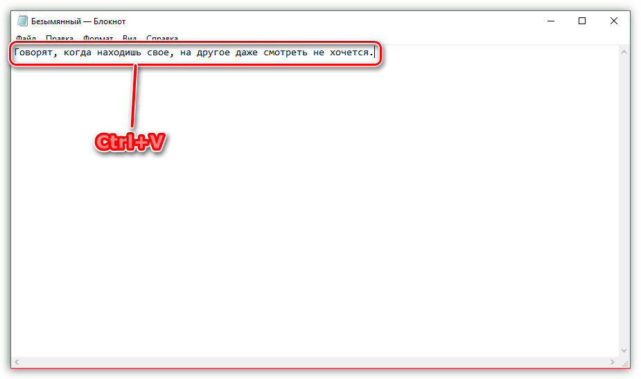 Откройте на компьютере любой тестовый редактор (подойдет даже стандартный Блокнот) и вставьте информацию, хранящуюся в буфере обмена, сочетанием клавиш Ctrl+V. Подобную операцию выполните со всеми фрагментами текста.