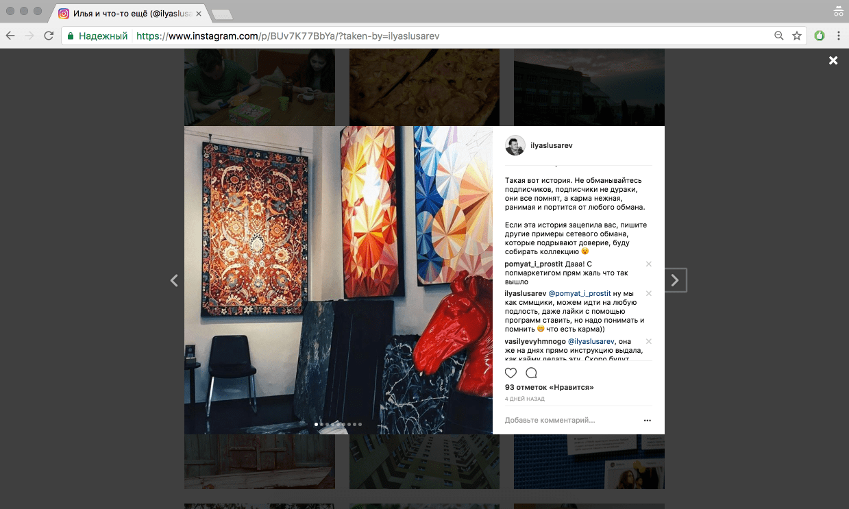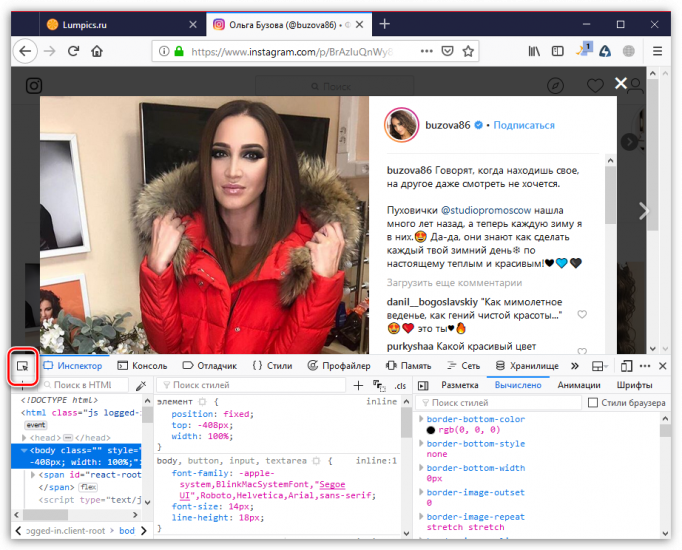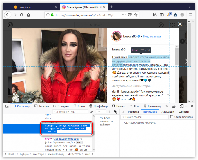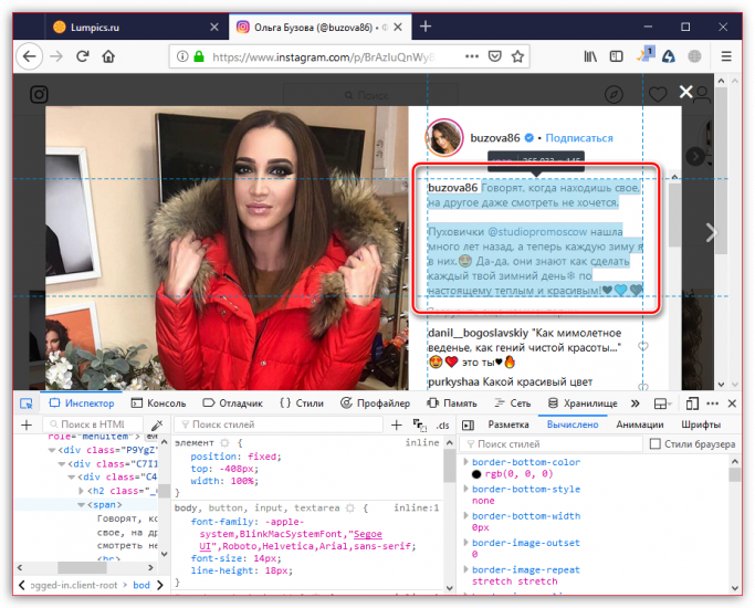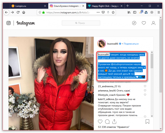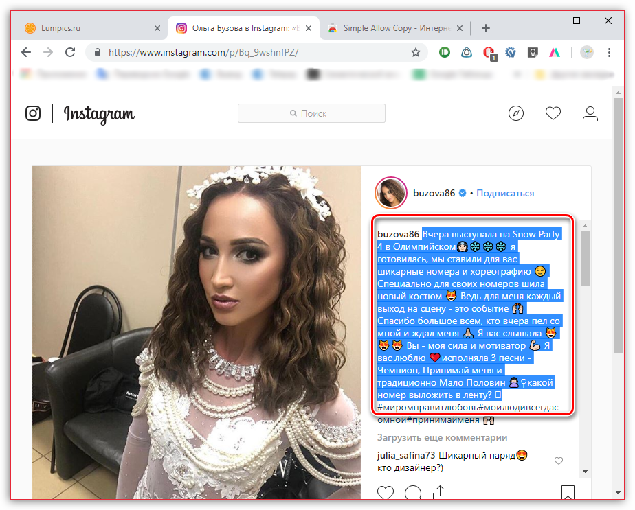 - Откройте на сайте Instagram изображение, с которого требуется скопировать текст.