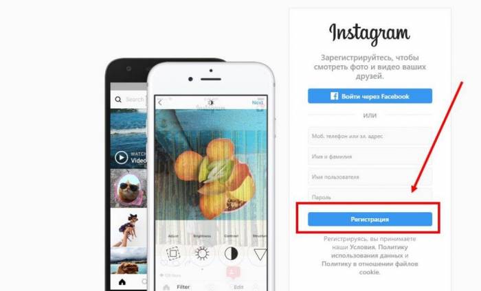 Если хотите создать страничку, не связанную с аккаунтом в другой соц. сети, нажимаем на кнопку регистрации при помощи телефона или электронного адреса.
