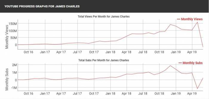 Статистика канала James Charles до инцидента с рекламой, произошедшего в мае 2019