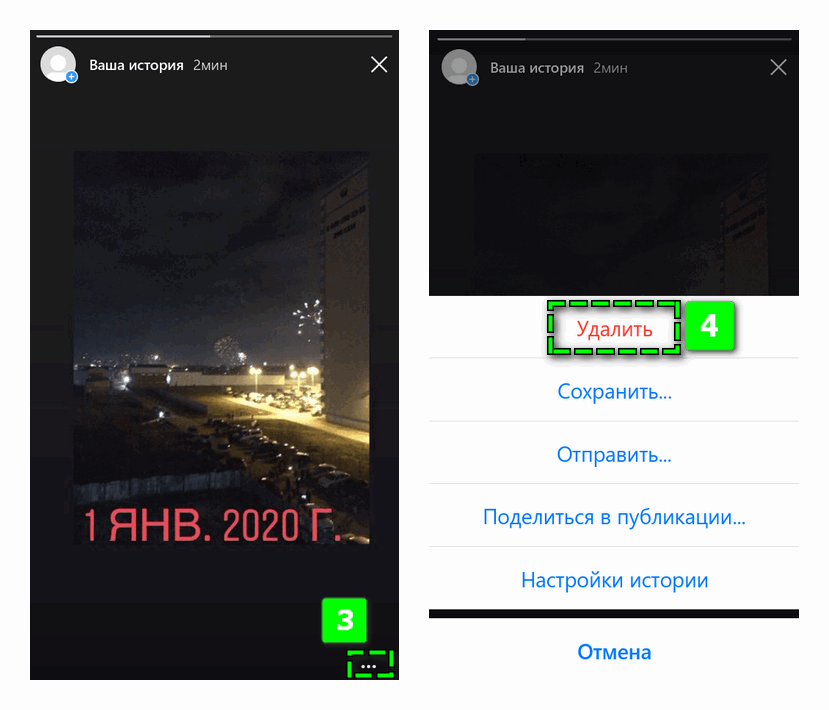 Необходимо тапнуть для начала проигрывания ролика. В самом нижнем углу, с правой стороны требуется найти значок с тремя точками и вызвать этим дополнительное меню. В представленном перечне нужно выбрать Удалить. Чтобы избавиться от сторис, потребуется подтвердить операцию. После полного удаления ролика контент никто не сможет больше посмотреть.