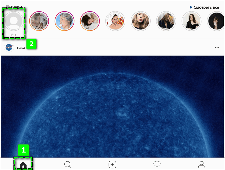 Если контент уже присутствует, для удаления потребуется осуществить немного иные манипуляции. Требуется тапнуть по символу с домиком и потом перейти в новости. Над опцией нужно найти сторис.