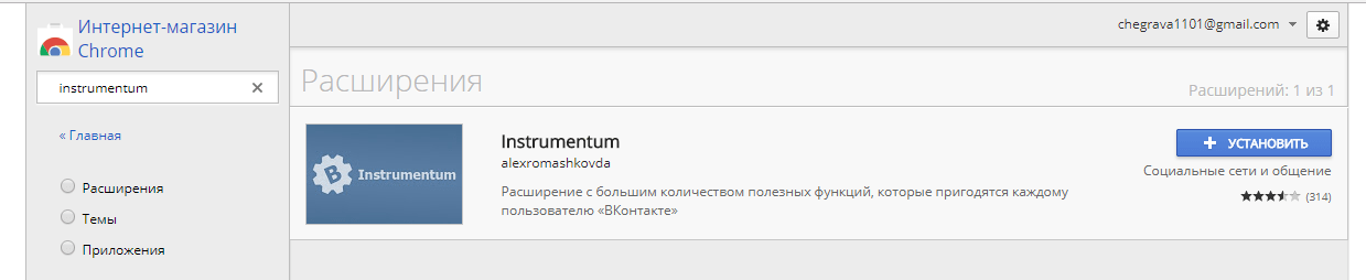 3. Введите в поиск название расширения — Instrumentum, найдите его и нажмите кнопку “Установить”