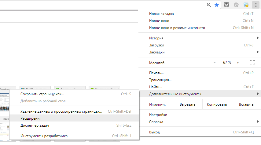 во всплывающем меню и перейдите в “Расширения”