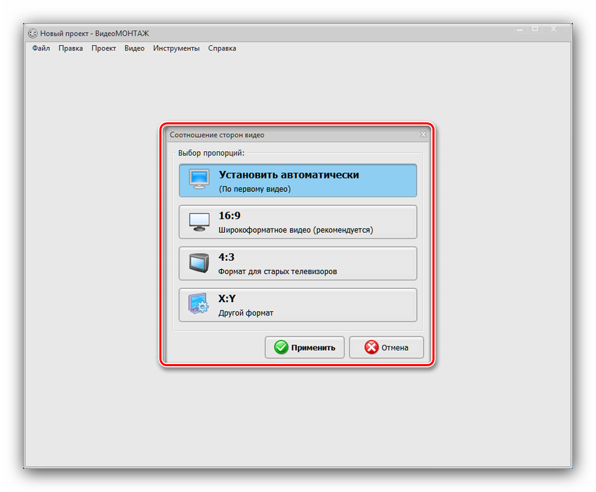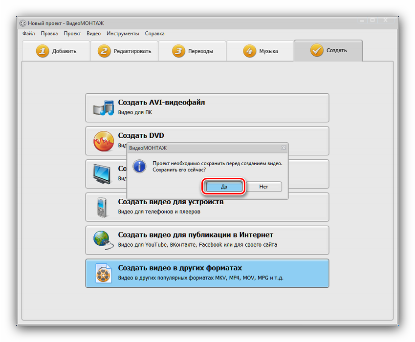 После внесения всех требуемых изменений переходите на вкладку «Создать». Выберите требуемый формат ролика.