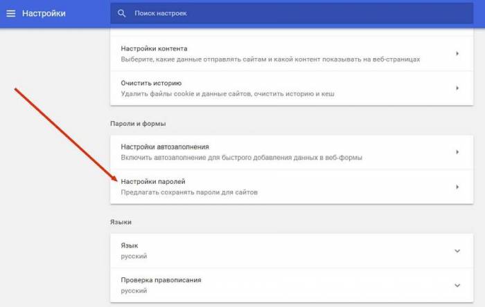4.В разделе «Пароли и формы» нажимаем на «Настройки паролей»;