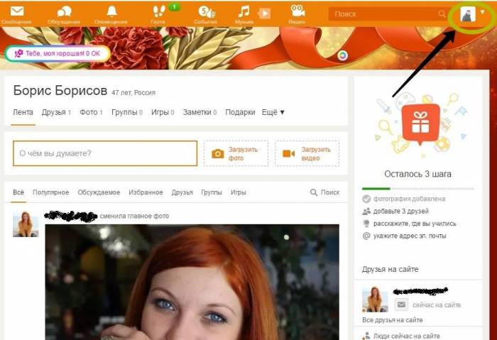 - Кликните на иконку со своим аватаром в правом верхнем углу страницы.
