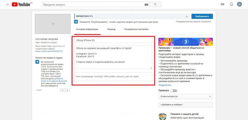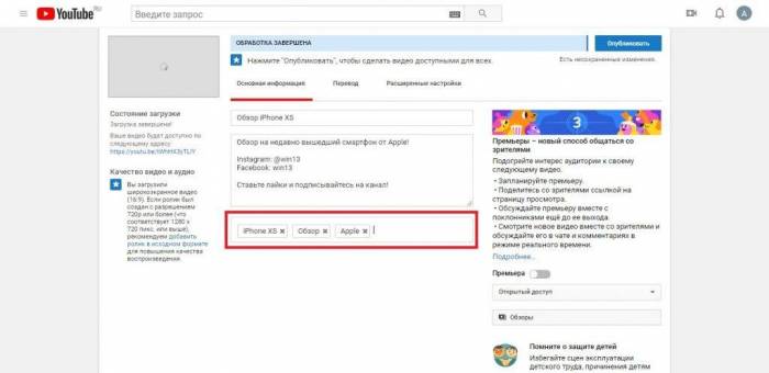 Измените название видео, добавьте описание и проставьте теги