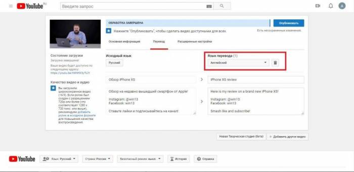 Если вы хотите, чтобы ваше видео смотрели на других языках, например, на английском, то вы можете загрузить сюда перевод или заказать его платно.