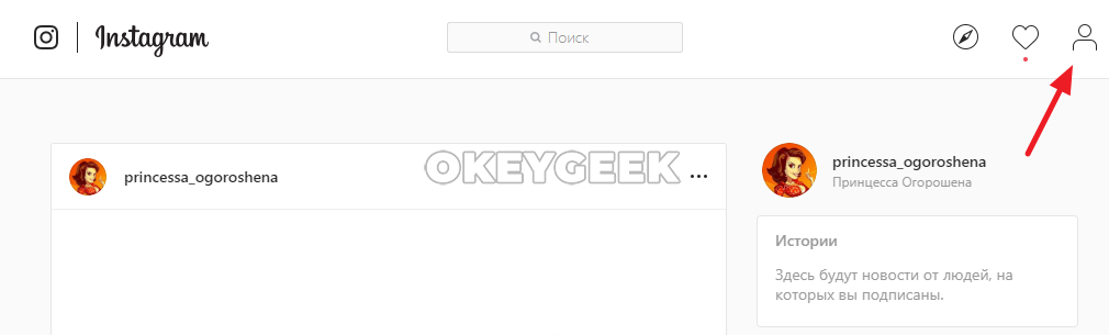 - Открываем свой профиль. Для этого жмём по иконке с человеком в правом верхнем углу.
