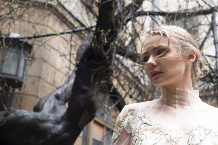 На Карине: платье Ianis Chamalidy (165 000 р.) – бренд красивый, женственный и абсолютно питерский: сложный крой, монохром, глубокие тона, а еще одинаково прекрасные повседневные и праздничные наряды.