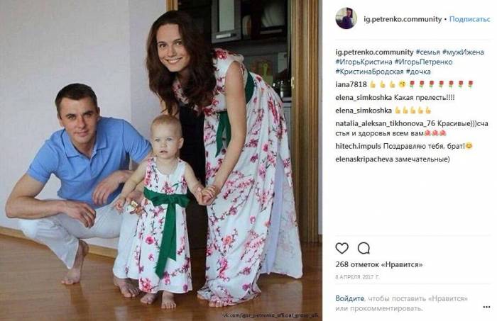 На фото Кристина Бродская с семьей: мужем Игорем Петренко и дочкой. Инстаграм ig.petrenko.community.