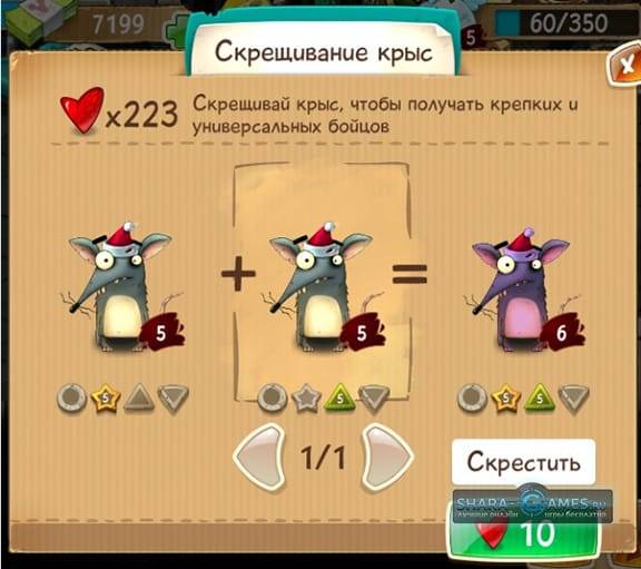 Чтобы получить новую крысу, вы можете скрестить две имеющихся у вас. Для этого необходимо выбрать подходящую крысу и нажать кнопочку «Скрестить». Стоит отметить, что во время скрещивания суммируются и навыки.