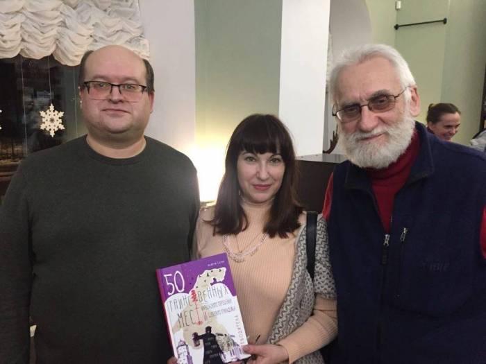Валерия на презентации книги Андрея Серова (слева), справа Евгений Филиппов
