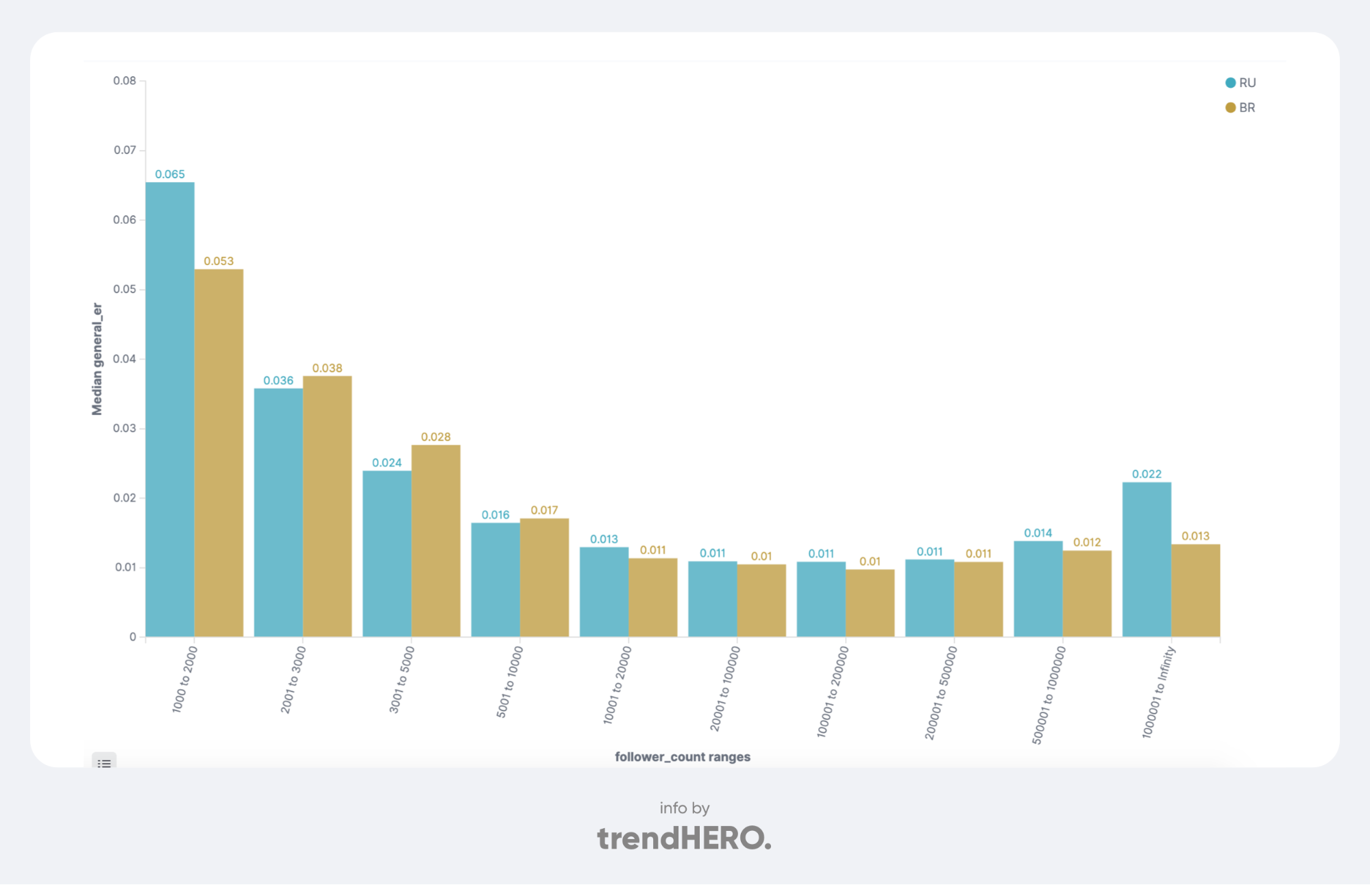 давайте посмотрим сводную статистику по всем аккаунтам российских инфлюенсеров: