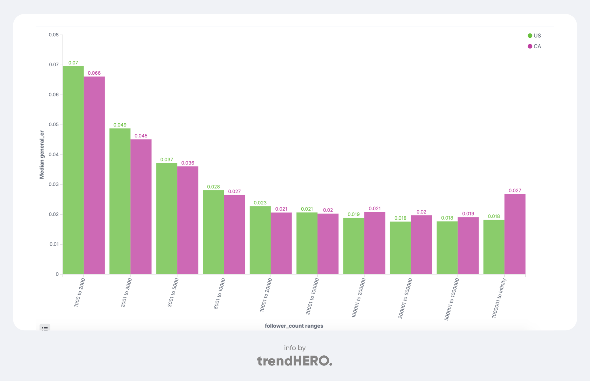 Для этого мы сравнили, что творится с медианой ER в странах, которые условно рядом. Почему не сравнить просто период? Потому что хочется сравнивать похожие данные. Вовлечённость посреди лета и во время предновогоднего безумия отличается. Поэтому или сравнивать месяц к месяцу, или похожие аудитории.