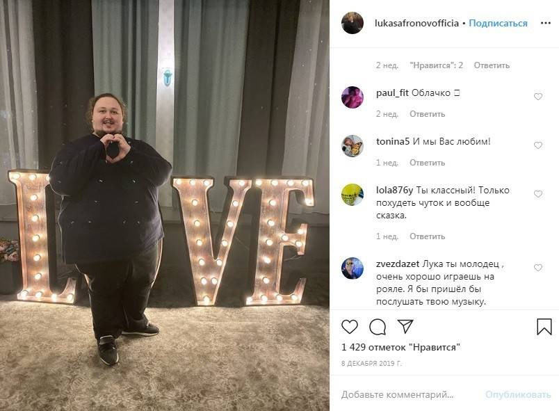 Более того, в Сети можно увидеть множество снимков пианиста, и практически на всех он употребляет пищу. Подписчики Луки неоднократно призывали его заняться своим здоровьем, но пианист никак не реагирует на такие сообщения.