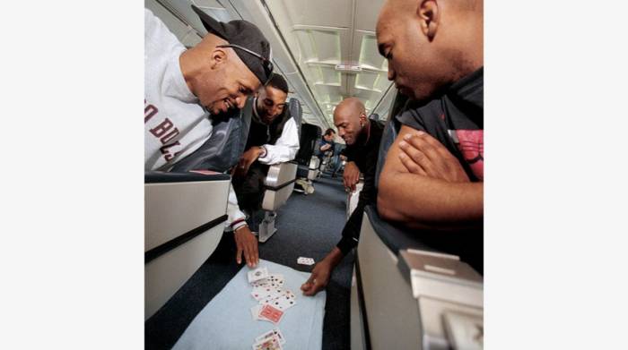 «В 1990-е годы на борту чартера «Буллз» фактически работало самое настоящее казино – есть известная фотография журнала Sports Illustrated, на которой Рон Харпер, Скотти Пиппен и Майкл Джордан режутся в карты прямо на полу самолета, постелив на него не идеально сложенное одеяло. Его свернули так, чтобы карты не разлетались – то есть, играли тут частенько.