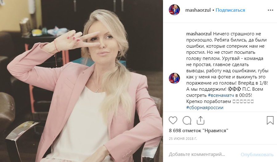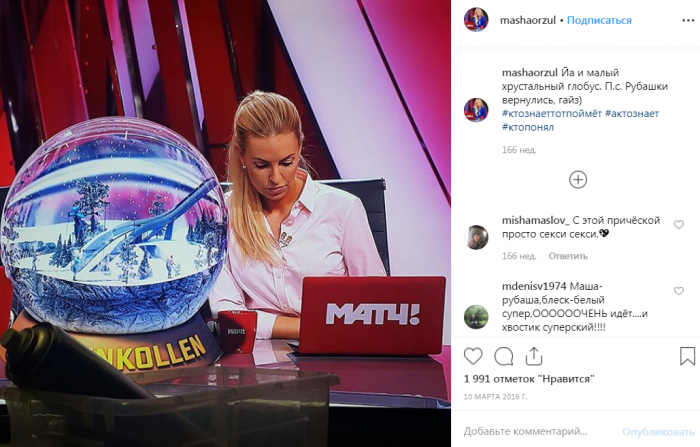 ВКонтакте девушка бывает редко. Ссылка на ее страницу — https://vk.com/id298505437. Есть Мария Орзул в Твиттере. Ее посты можно найти по этой ссылке — https://twitter.com/mariaorzul. Он также посвящен работе и комментариям о спортивных мероприятиях.