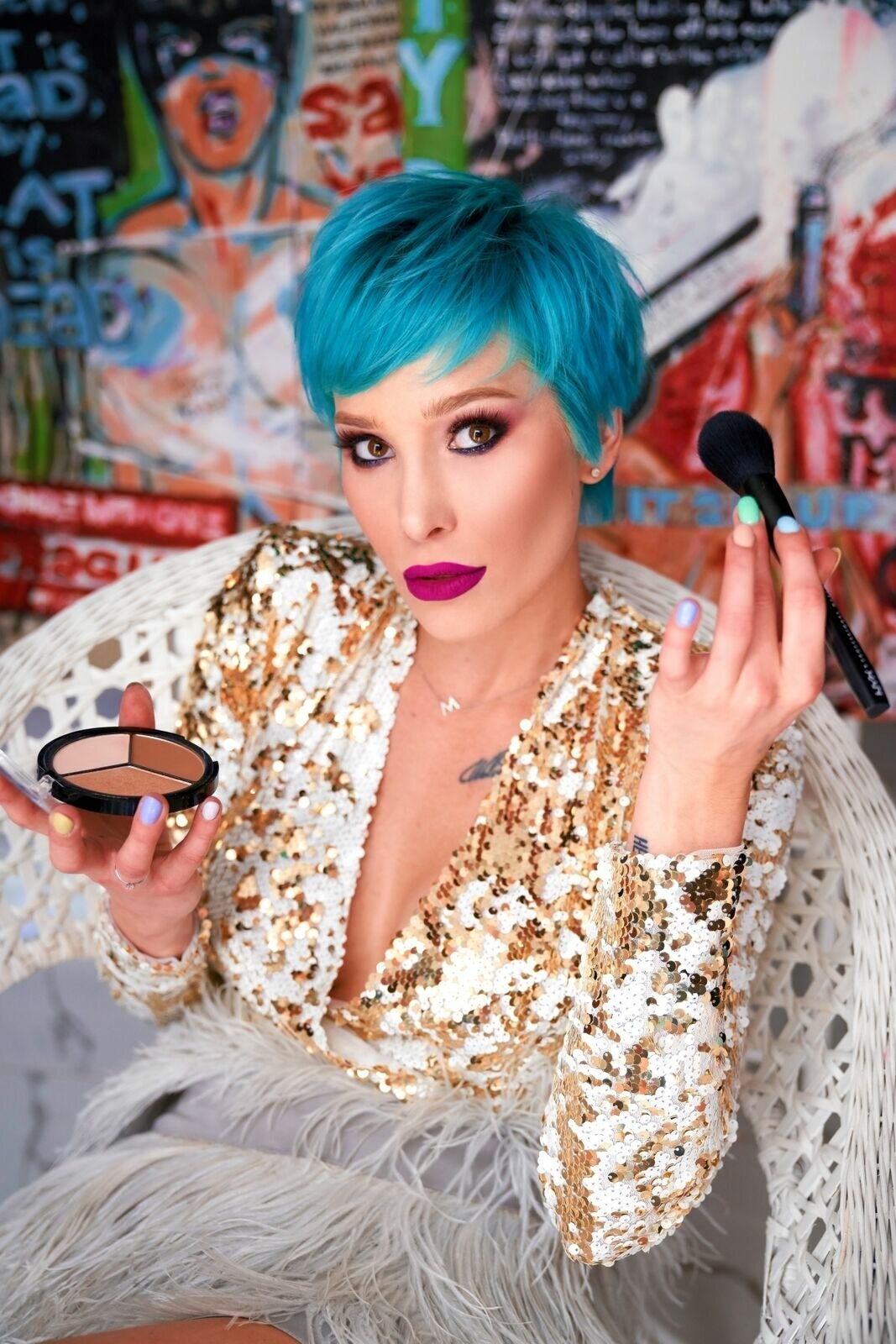 Визажист в своих видео нередко рассказывает, как скрывать недостатки и подчеркнуть достоинства с помощью обычных косметических средств и одежды. Она настолько хорошо владеет кистью и косметикой, что порой меняется до неузнаваемости.