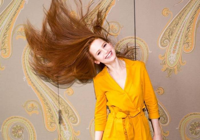 Актриса утверждает, что никогда не прибегала к услугам пластических хирургов и настаивает на естественности своей красоты. Девушка действительно очень хороша: у нее четкий овал лица, высокие скулы, небольшой нос с узкой спинкой и большие выразительные глаза, карий цвет которых кажется глубоким и насыщенным благодаря «медным» волосам и красиво изогнутым бровям того же цвета. Нашу героиню не портит легкая асимметрия подбородка, от которой она не спешит избавляться.