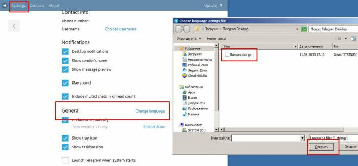 Существует и довольно нестандартный способ установить русский язык, который поможет тем, у кого по каким-то причинам не имеется встроенного русского языка (например, старая версия мессенджера ). Итак, выполняем все последовательно: