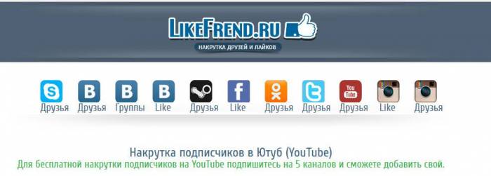 Последним в сегодняшнем обзоре пойдет сервис likefrend. Он не позволяет накрутить просмотры, но вот накрутить подписчиков Youtube, очень даже легко можно. Работает сервис по очень простому принципу. Вы подписываетесь на предложенные подписки, ну а другие участники в ответ подпишутся к вам. Так что все предельно просто. Даже не нужно регистрацию. Заходите под своим гугл аккаунтом, и подписываетесь на предложенные вам подписки.