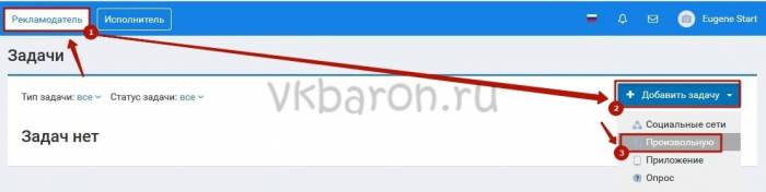- В вашем личном кабинете на сайте в разделе «Добавить задачу» выберите «Произвольные»;
