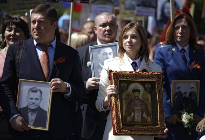 - На акции «Бессмертный полк» она принесла не портрет одного из родственников, погибших в годы Великой Отечественной войны, а портрет Николая II. У многих пользователей Интернета это вызвало недоумение.