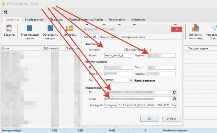 После первого нажатия «Обновить статистику» в YellowGram может появится статус «Заблокирован/удален». Снова нажмите «Стоп текущей задачи» и «Остановить аккаунт» и при необходимости установите чекбокс Аккаунт: «активен» в настройках аккаунта.