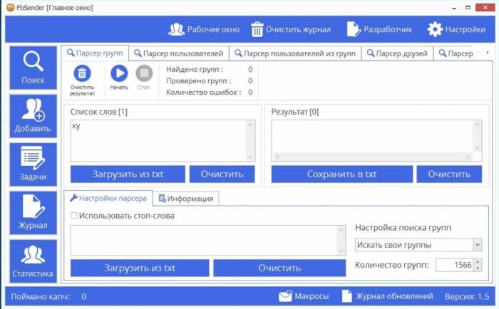 Плюсы: Хороший парсер для фейсбука, работает бесплатно, понятный интерфейс, полностью на русском языке. Позволяет устанавливать задержку действий, для обхода алгоритмов фейсбука.