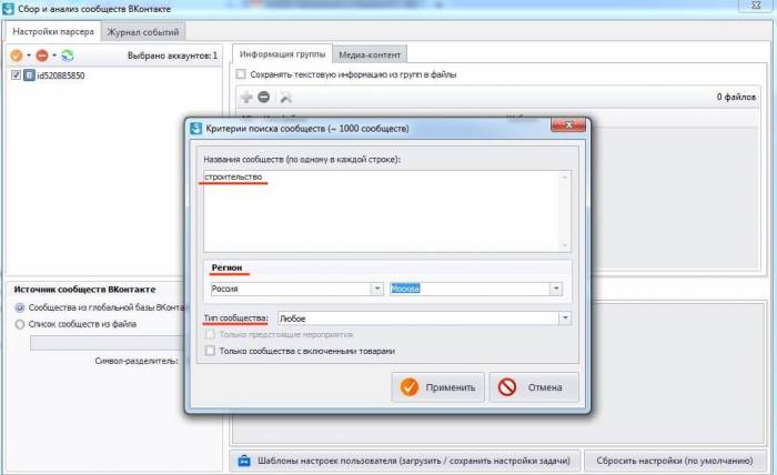 - Сбор базы осуществляется по определенному типу сообществ. Вы можете получить информацию о группах, публичных страницах или встречах, но никак не обо всех одновременно.