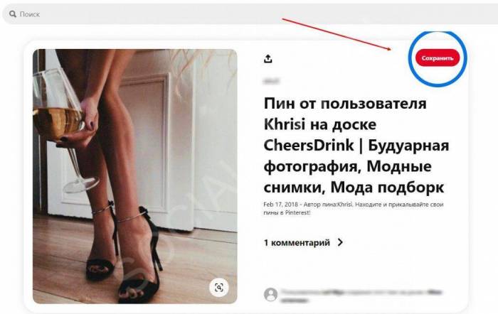 Рис. 4. Чтобы создать новый пин, сохраняем картинку в Пинтерест.
