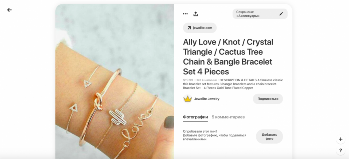 - Товарные пины включают информацию о цене, наличии товаров, а также их описание. Фотографии по отдельности загружают на Pinterest и прикрепляют к ним ссылку на продукт или услугу. Эти пины — прекрасная возможность повысить продажи.