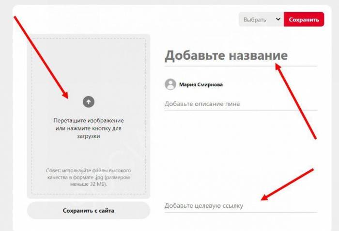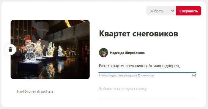 Я добавила картинку со своего компьютера, ввела название пина и его описание (рис. 4). Далее нужно нажать на красную кнопку “Сохранить”: