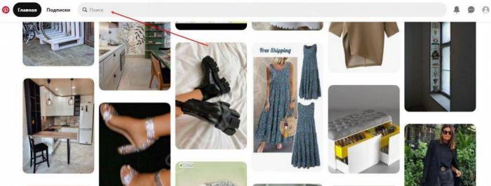 Для поиска пинов по интересующей теме в верхнем левом углу есть специальное окно для ввода. Человеку нужно лишь сформулировать запрос, после чего ему будут показаны картинки нужной тематики. Там же можно найти и какого-либо автора, если знаете его никнейм, имя.