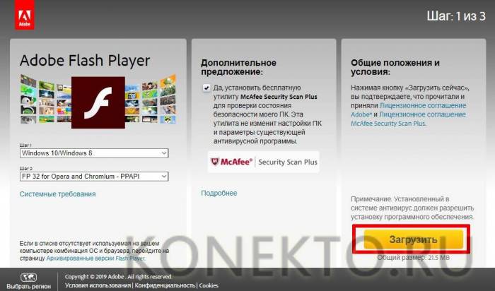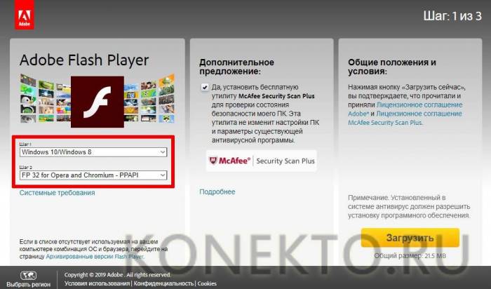 Сначала стоит перейти на страницу сайта с модулем для браузера по адресу — get.adobe.com, а затем выбрать нужную операционную систему и браузер.
