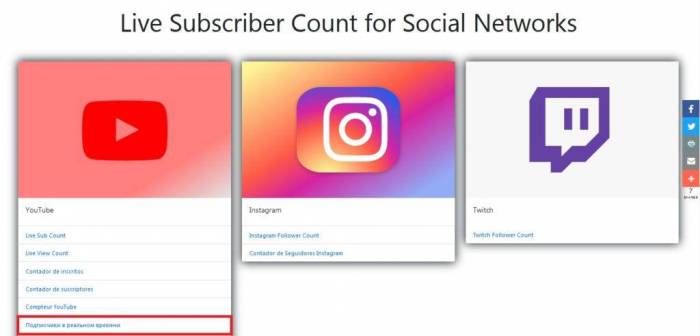 Live-sub-count – бесплатная онлайн-платформа подсчёта подписчиков с простым многоязычным интерфейсом.