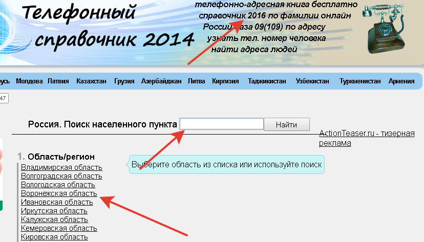 Для этого вводим в поисковик «Телефонный справочник России», но лучше просто пройдите по этой ссылке //russia09.info/rossiya, так как поисковик Вам выдаст очень много сайтов, где пытаются снять деньги за услугу, а я для Вас уже нашла безопасный.