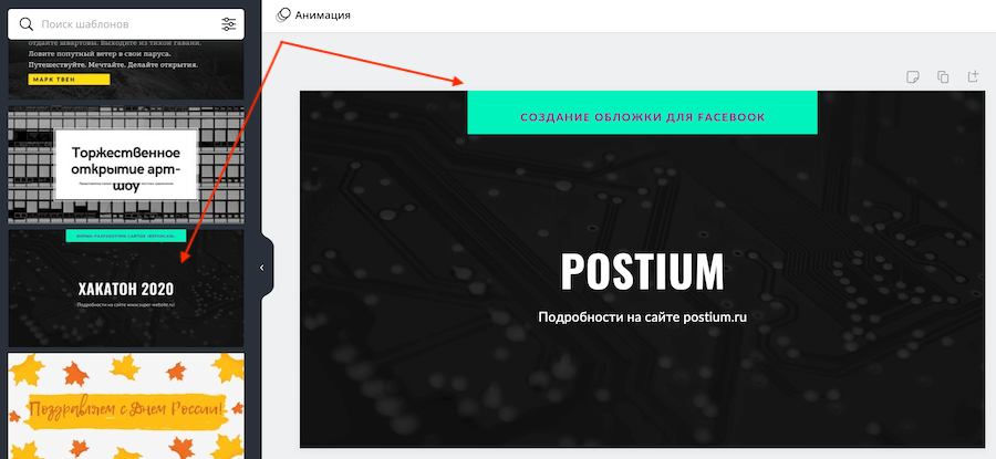 Canva — идеальный сервис для создания шапки для группы в Facebook. На сайте есть множество готовых шаблонов обложек, а также очень простой интерфейс. Давайте рассмотрим процесс создания обложки пошагово.