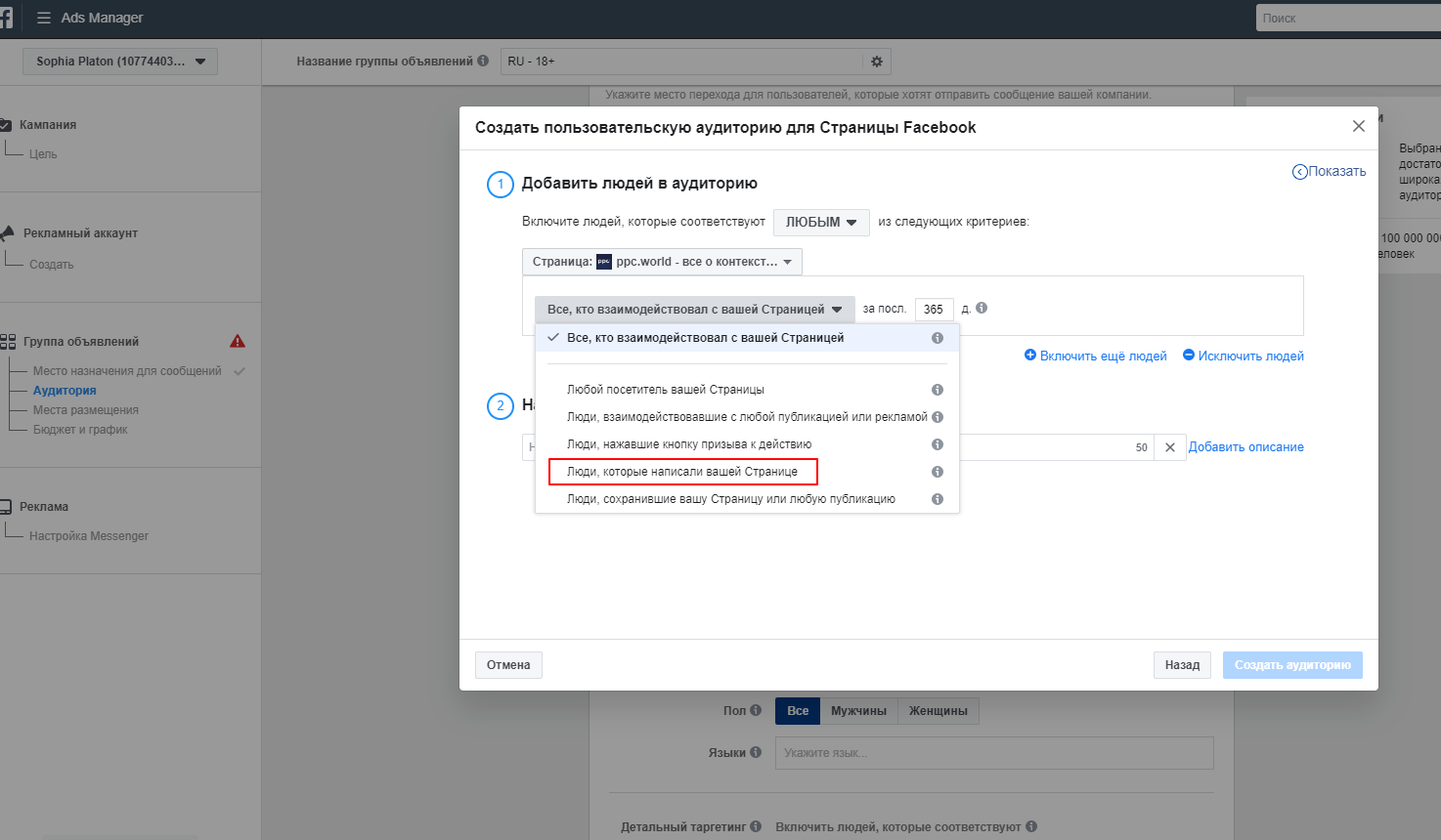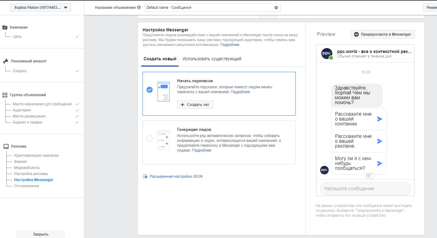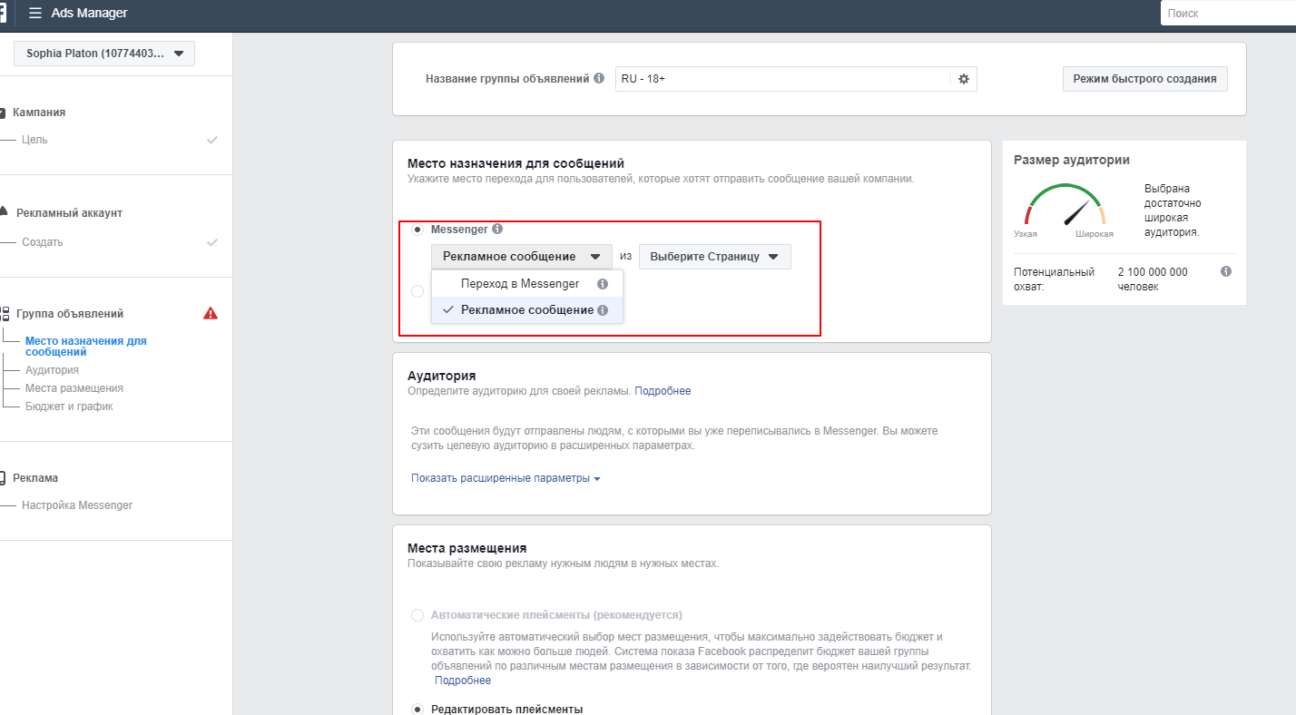 Для рекламы в Messenger доступны все настройки таргетинга: по интересам, поведению, географии, социально-географическим характеристикам, на индивидуализированные аудитории. Исключение — рекламные сообщения, для этого формата аудитория ограничена пользователями, с которыми вы общались прежде.