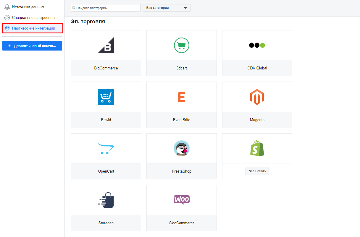 Воспользоваться данным методом можно перейдя во вкладку «Партнерские интеграции».