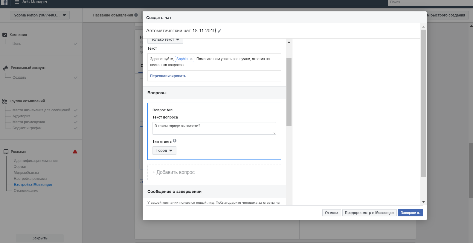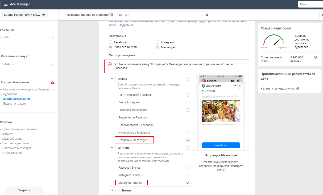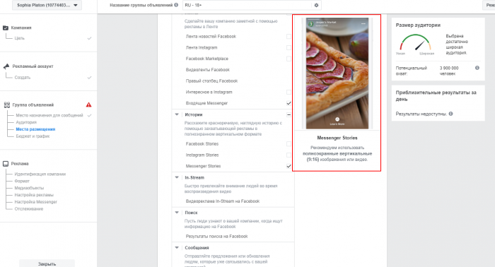 Реклама в Facebook Messenger позволяет увеличить охват кампаний для ленты и Stories в Instagram и Facebook, выполняя роль дополнительного канала воздействия на целевую аудиторию.