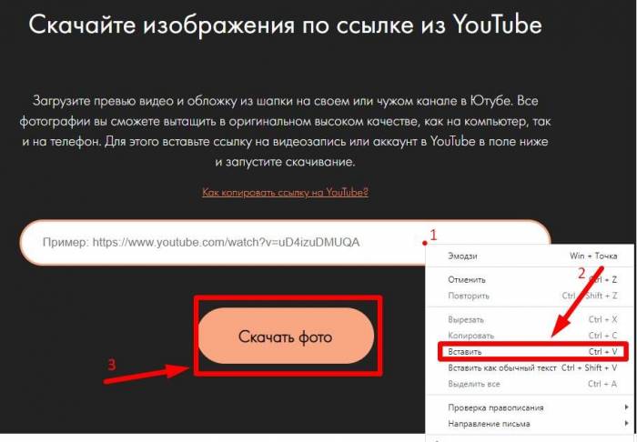 Сразу стоит сказать, что четвертый метод схож с третьим, так как нам понадобится помощь стороннего сайта. Но, данный способ в какой-то степени более удобный, так как можно выбрать размер изображения. Чтобы скачать превью с ютуба, воспользуемся следующим методом: