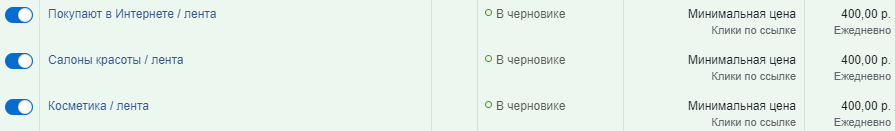 - Нажимается кнопка той публикации, которая продвигается в момент выполнения операции.