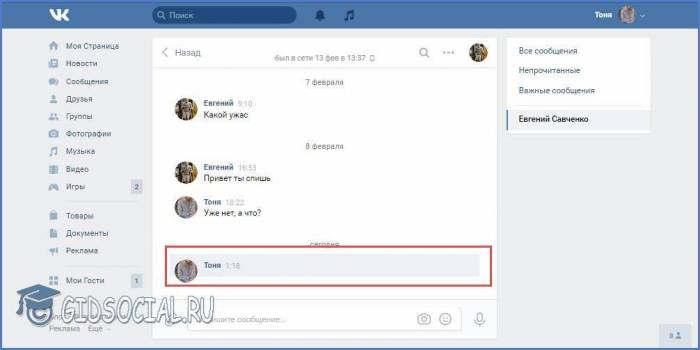 - Чтобы проверить, все ли получилось, нужно зайти в Диалоги и открыть первую в списке беседу.