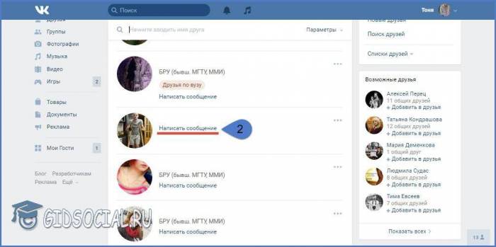 - Выбираем человека, на котором протестируем функцию, и нажимаем на кнопку «Написать сообщение».